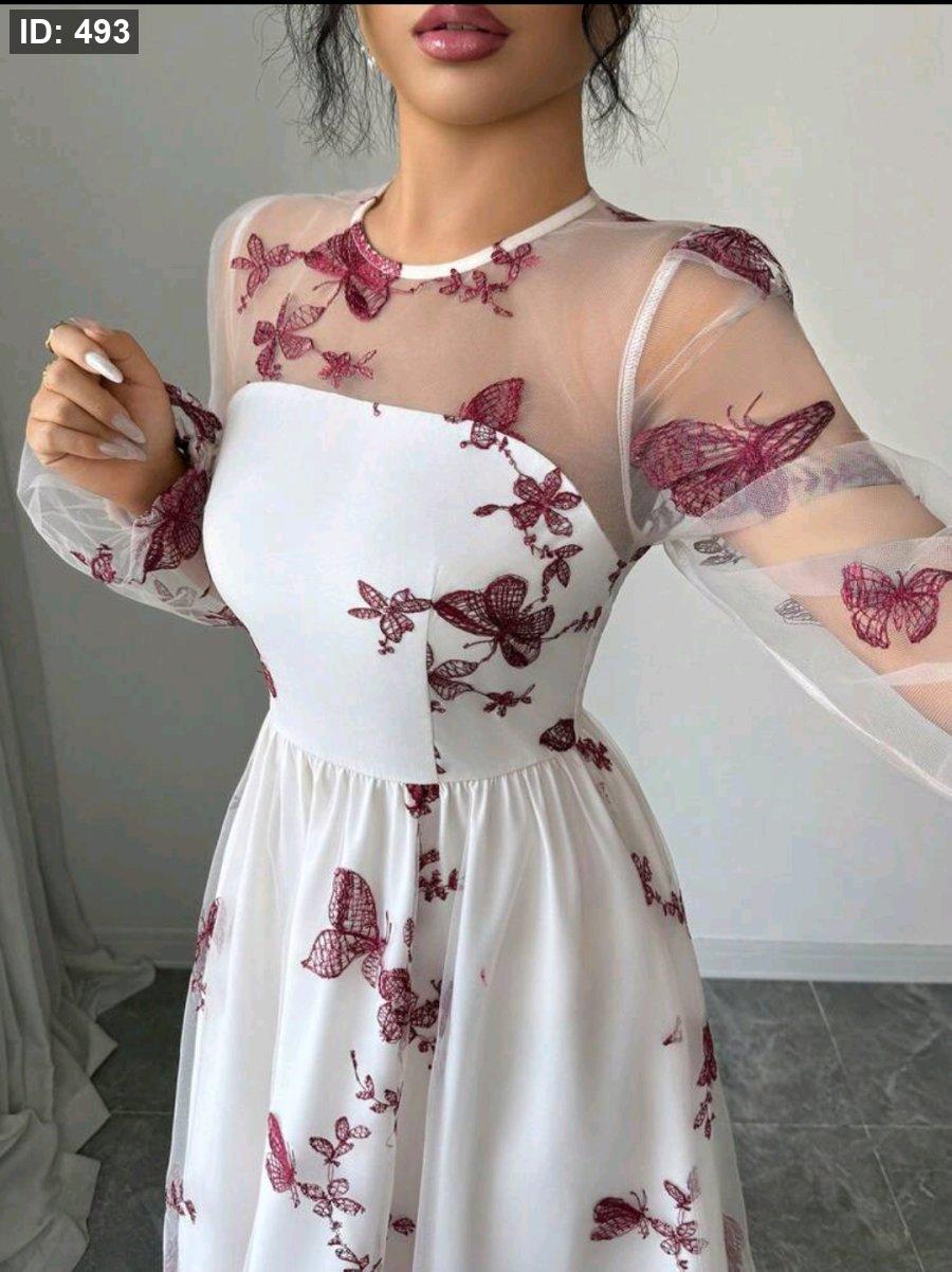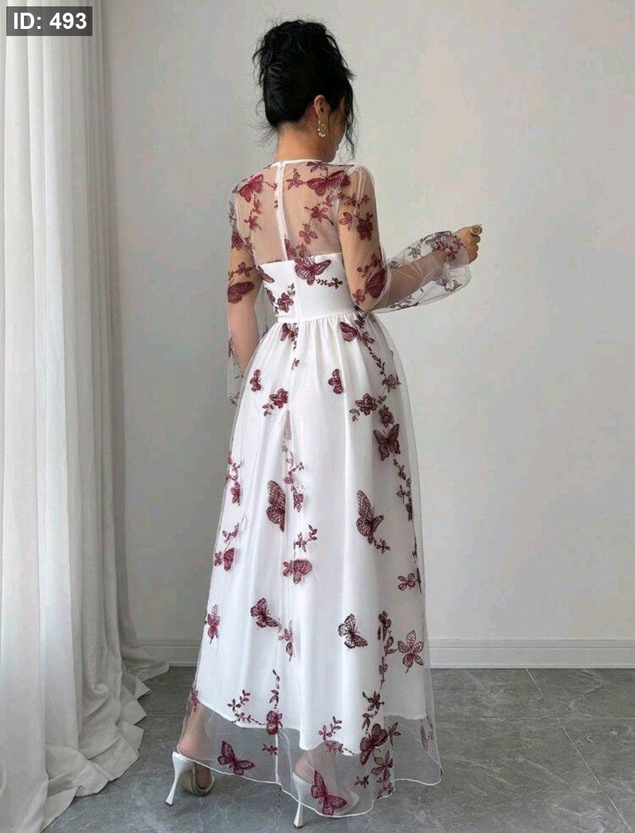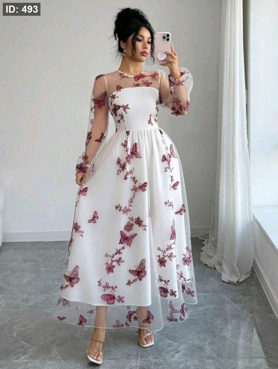 SHEIN Elenzya فستان نسائي جديد أنيق وراقي للحفلات والمناسبات الرسمية، مبطن بشبكة متعددة الطبقات مزين بطرز فراشات ثلاثية الأبعاد، مناسب للنساء من عمر 20 إلى 35 سنة وما فوق (التطريز عشوائي)