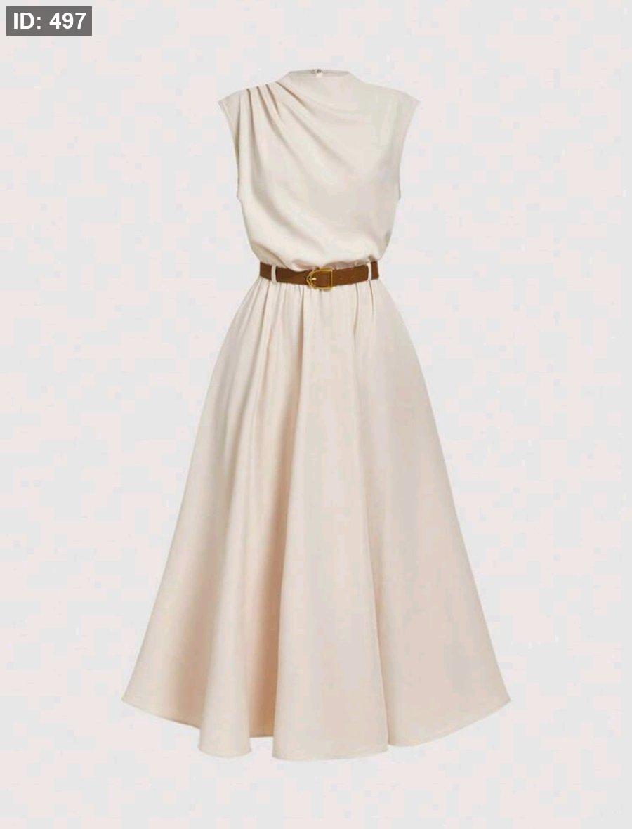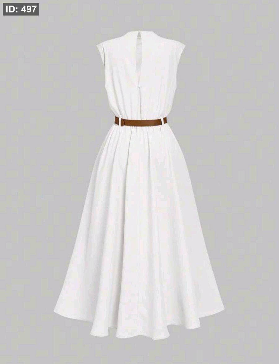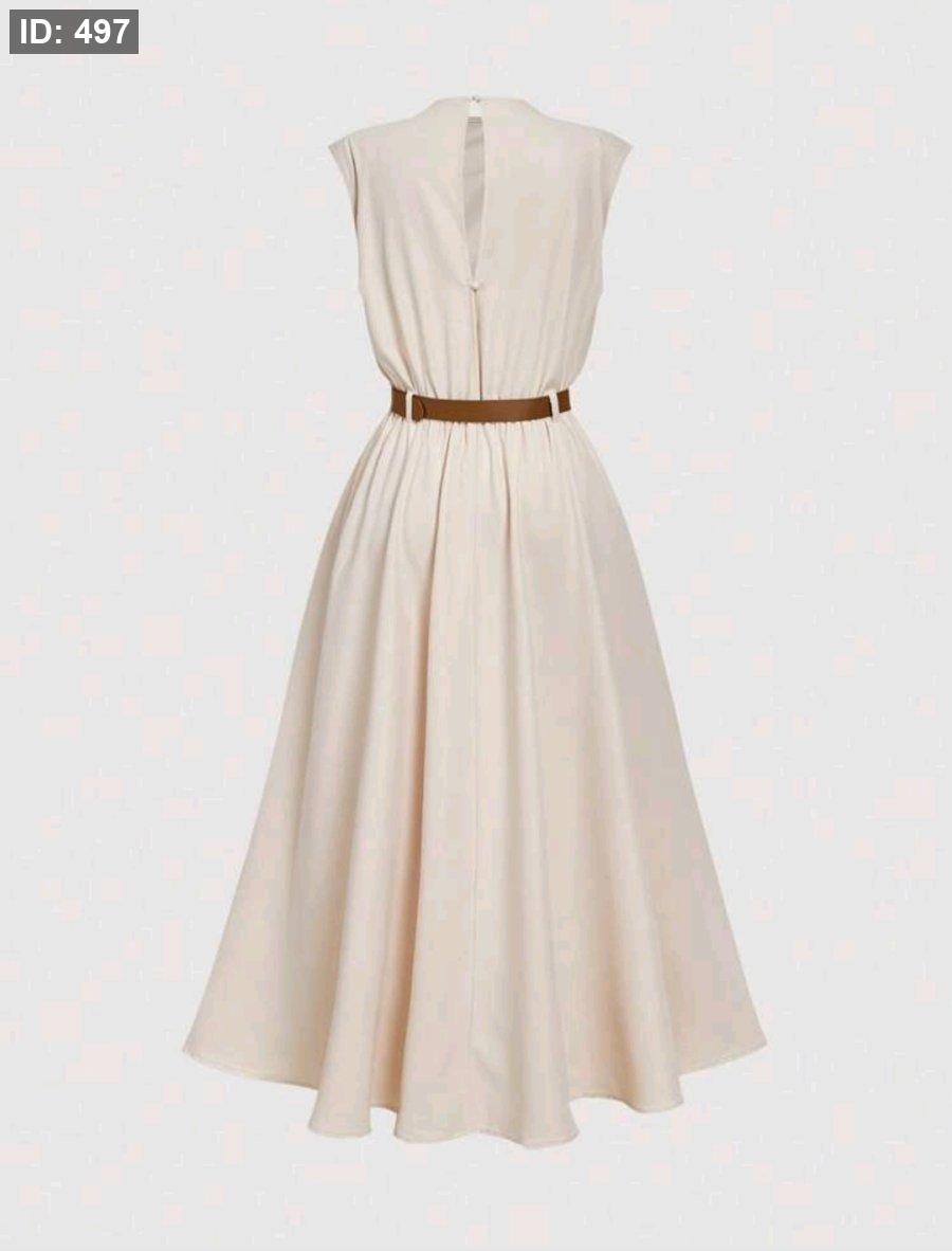 SHEIN MOD فستان أنيق بدون أكمام ذو لون واحد (مع حزام)، موسم العودة إلى المدرسة