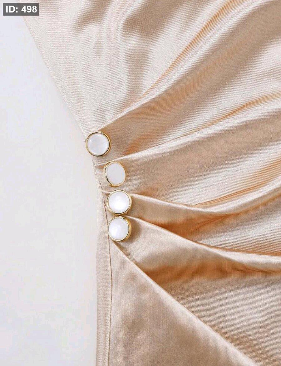 Franclia فستان أنيق مطوي مع رقبة متدلية للنساء
