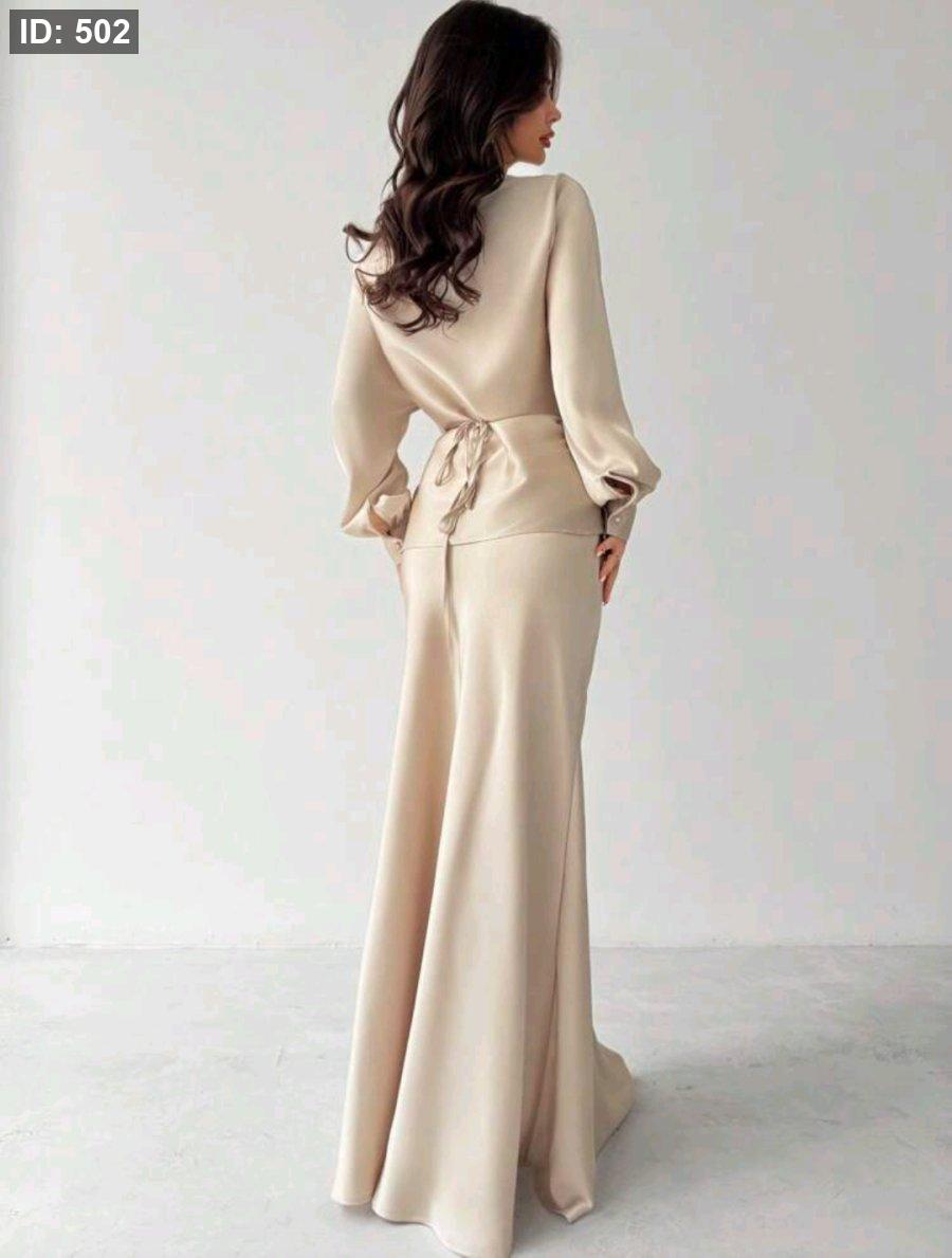 Firerie تنورة ساتان غير متماثلة الحافة من لون المشمش للنساء الأنيقات