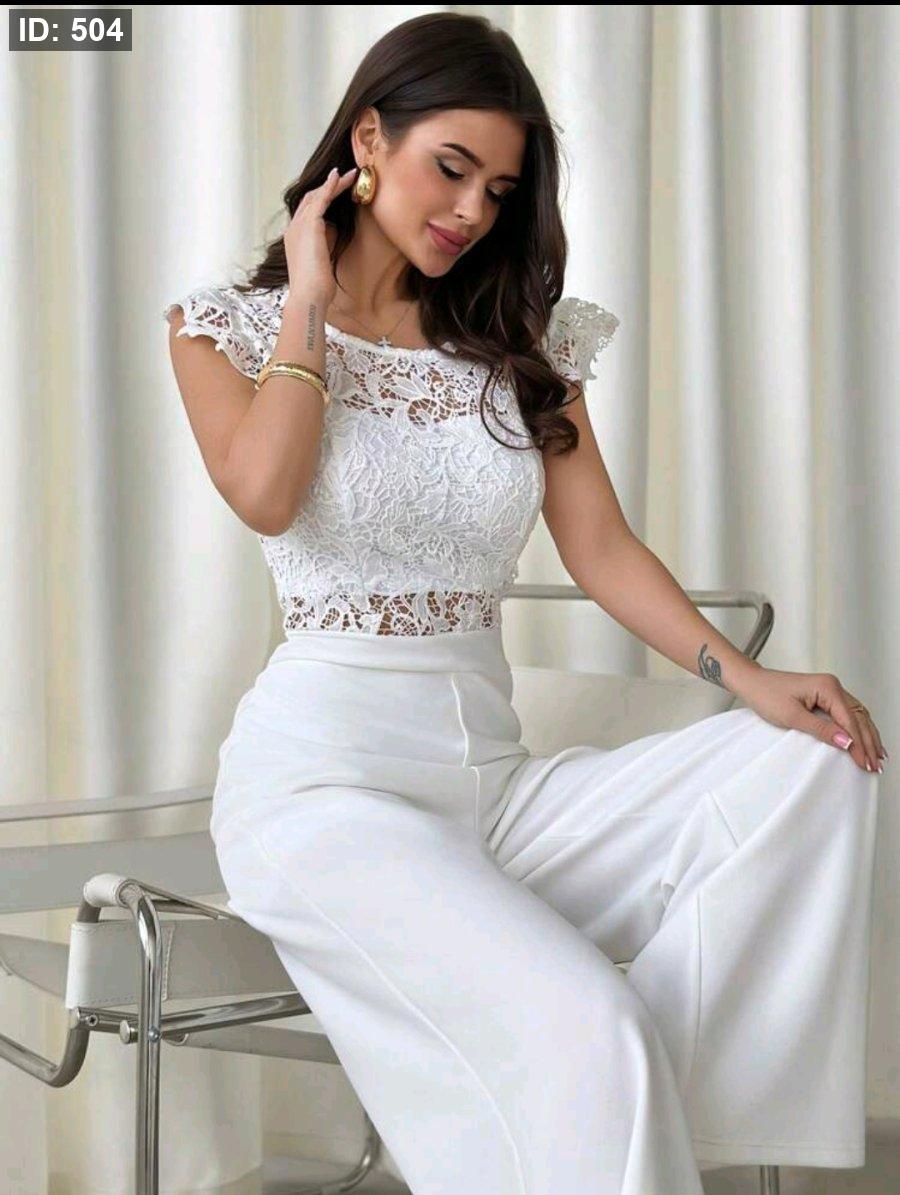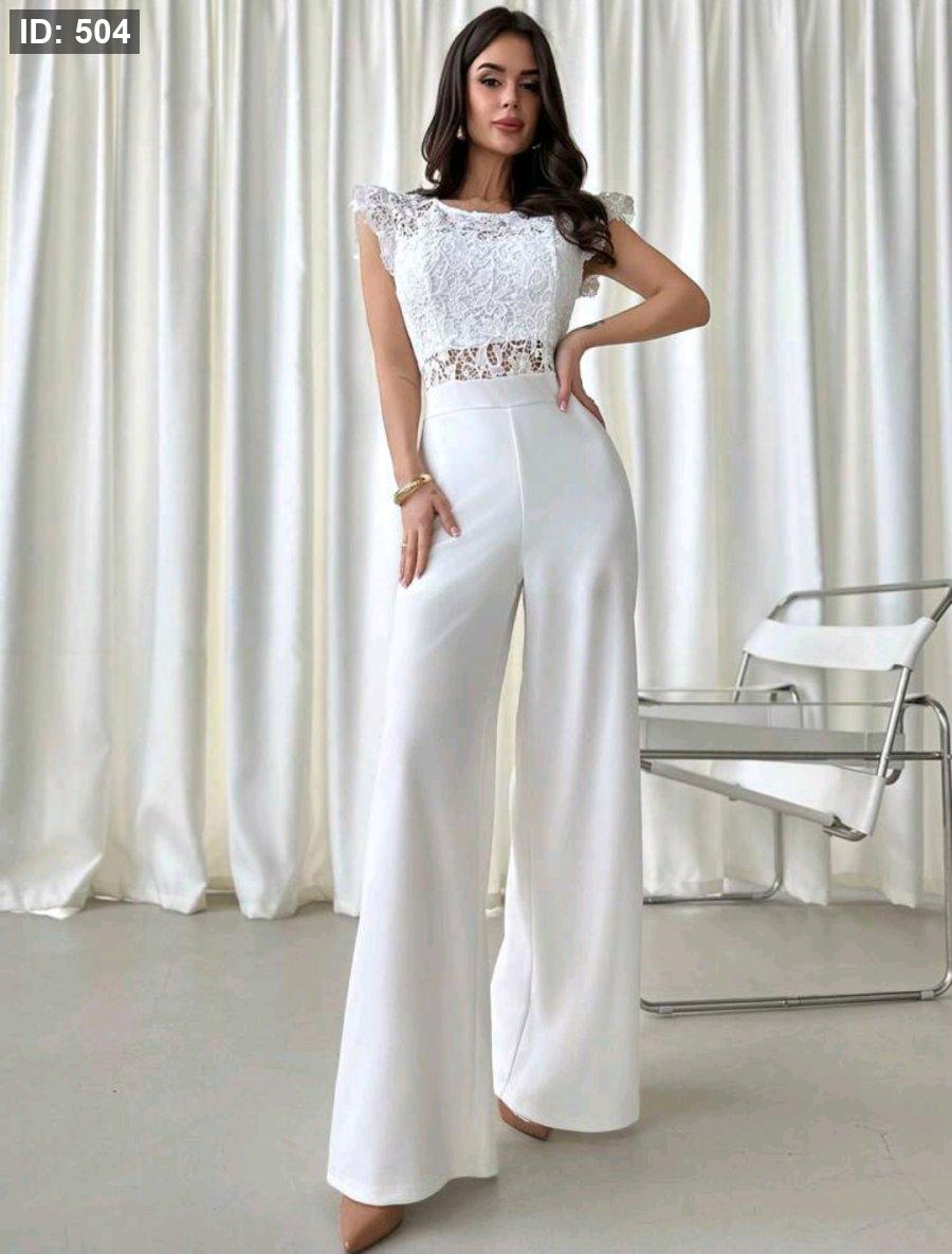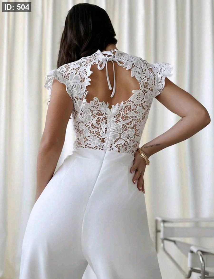 Firerie جمبسوت روومانسية أنثوية أنيقة ذات قطع من الدانتيل ووسط عالٍ ورجل واسع باللون الأبيض، مناسبة للتنقل اليومي وأيام الفالنتاين والمواعيد والحفلات، مناسبة للارتداء اليومي