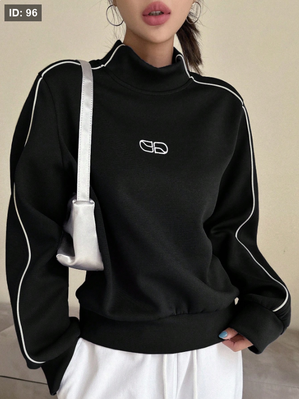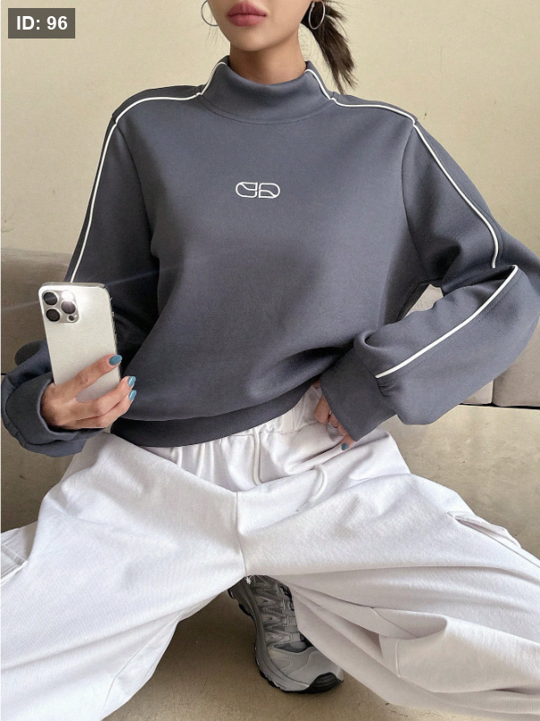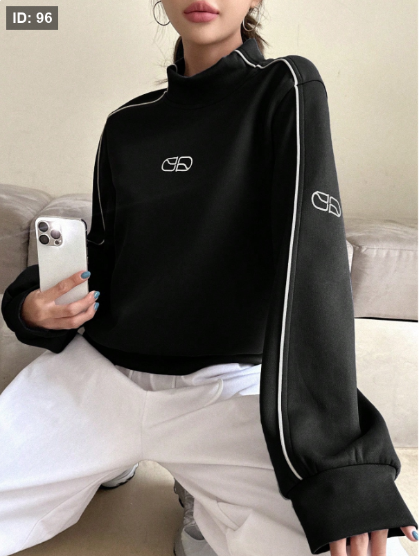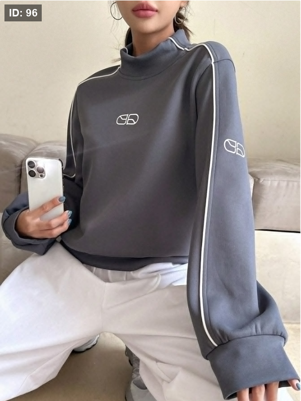 بلوزة رياضية بياقة مستديرة وأكمام منسدلة بطبعات هندسية، أكمام طويلة